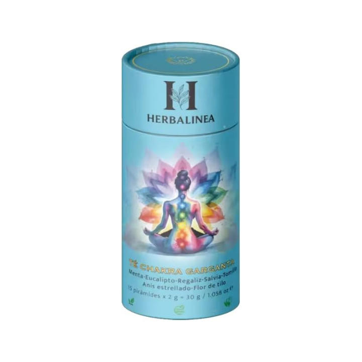 Herbalinea Té Chakra Garganta – Infusión Natural de Menta, Eucalipto, Regaliz, Salvia y Tomillo – 15 Pirámides Premium – Bienestar, Claridad y Expresión Interior