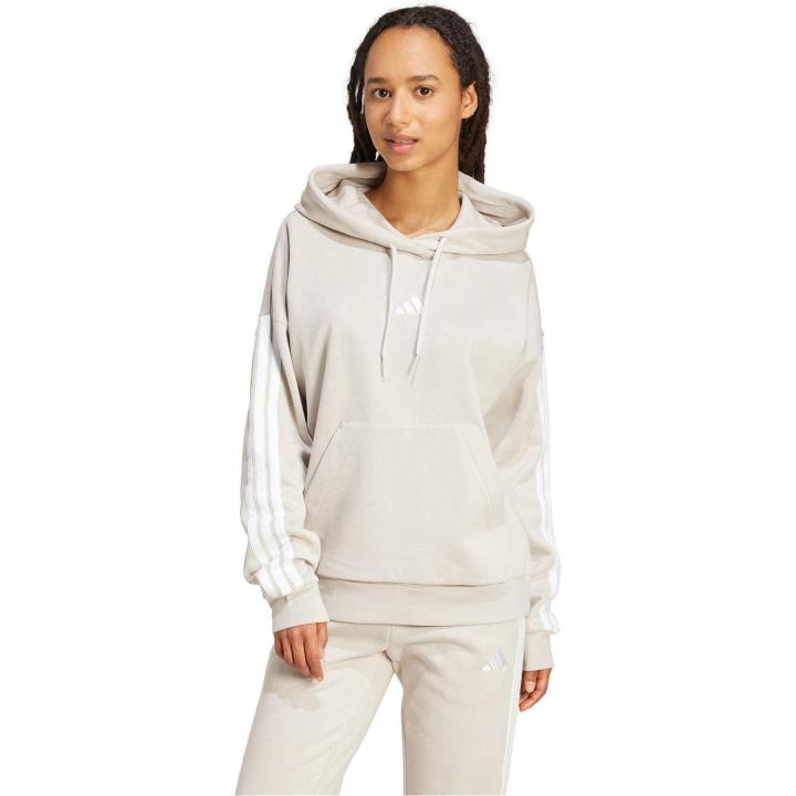 Descubre el equilibrio perfecto entre estilo y comodidad con esta sudadera adidas para mujer. Esta prenda se convertirá en tu aliada ideal para afrontar el día a día. Elaborada con un tejido ultrasuave, compuesto por Algodón, Poliéster reciclado y Viscosa, te garantiza una sensación inigualable de calidez y confort. Ya sea que decidas salir a conquistar el mundo o disfrutar de un merecido descanso en casa, esta sudadera está lista para acompañarte. Las icónicas 3 bandas en las mangas y el discreto logotipo en el pecho agregan un toque deportivo y auténtico que refleja tu espíritu dinámico. Además, su práctica capucha ofrece un extra de protección para esos días más frescos. No esperes más para hacer de esta sudadera de adidas la prenda favorita de tu armario.Con capucha.Tejido suave.Composición : 55% Algodón 36% Poliéster (reciclado) 9% Viscosa.Cuidados del producto : Lavar a máquina. Se recomienda no usar secadora.