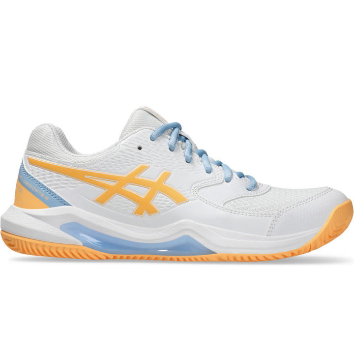 Para jugadoras de pádel y deportes de raqueta habituales que entrenan o compiten 2 o 3 veces por semana en cualquier tipo de superficie. Las zapatillas pádel mujer Asics GEL-DEDICATE™ 8 ofrecen una buena estabilidad y una sensación de flexibilidad para que tu mente se pueda centrar durante el partido. El empeine está confeccionado con materiales de cuero sintético que mejoran la sujeción. Mantienen tus pies firmes al cambiar de dirección y perseguir jugadas desafiantes. La unidad de sujeción TRUSSTIC™, lo que unido a la tecnología de amortiguación GEL™ encargada de absorber los impactos, garantizará que cuentes con un confort inigualable en tus pies. La suela de goma envolvente mejora la estabilidad y la tracción para que te muevas libremente por la pista. ¡Demuestra tu nivel en cada set!La parte superior de la zapatilla Asics GEL-DEDICATE™ 8 Blanco Naranja Azul está fabricada con tejido tupido flexible de transpiración y refuerzos de cuero sintético muy resistentes en la puntera, proporcionando soporte y comodidad para moverse con confianza.La entresuela de la zapatilla Asics GEL-DEDICATE™ 8 cuenta con la tecnología GEL™ en el antepié asegura una excelente absorción de impactos, mientras la plataforma de espuma mejora la suavidad y confort durante los partidos más intensos. Además, la pieza TRUSSTIC del mediopié aumenta la estabilidad en los movimientos laterales.La suela de la zapatilla pádel Asics GEL-DEDICATE™ 8 está compuesta por goma de contacto total y diseño estriado que proporciona un excelente agarre multisuperficies.