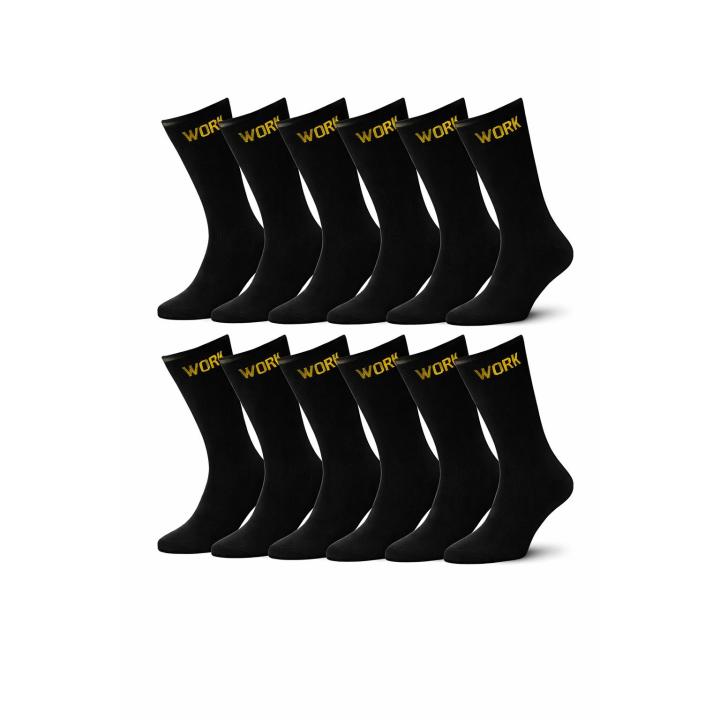 Consigue el mejor pack ahorro de calcetines de trabajo de la marca WORK. Este lote de 12 pares ha sido fabricado pensando en el profesional que necesita un calcetín laboral negro de alta calidad, cómodo y duradero para combinar con su calzado de seguridad.