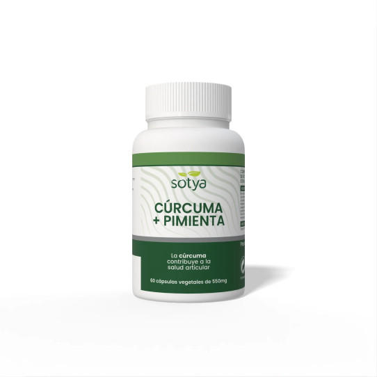 El complemento alimenticio Cúrcuma + Pimienta de Sotya está formulado con extracto de cúrcuma estandarizado y pimienta negra, una combinación natural ideal para apoyar el bienestar articular y digestivo. La curcumina posee propiedades antiinflamatorias y antioxidantes, mientras que la piperina mejora su absorción para una mayor eficacia.