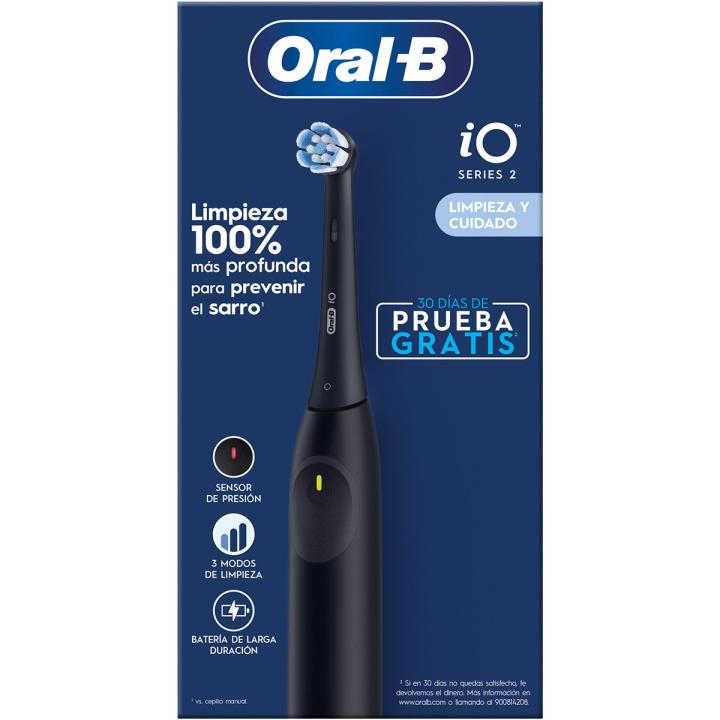 La cepillo de dientes eléctrico Oral-B Series 2 iO ofrece tecnología innovadora para una limpieza eficaz y suave de dientes y encías, con sensor de presión y tres modos de cepillado.