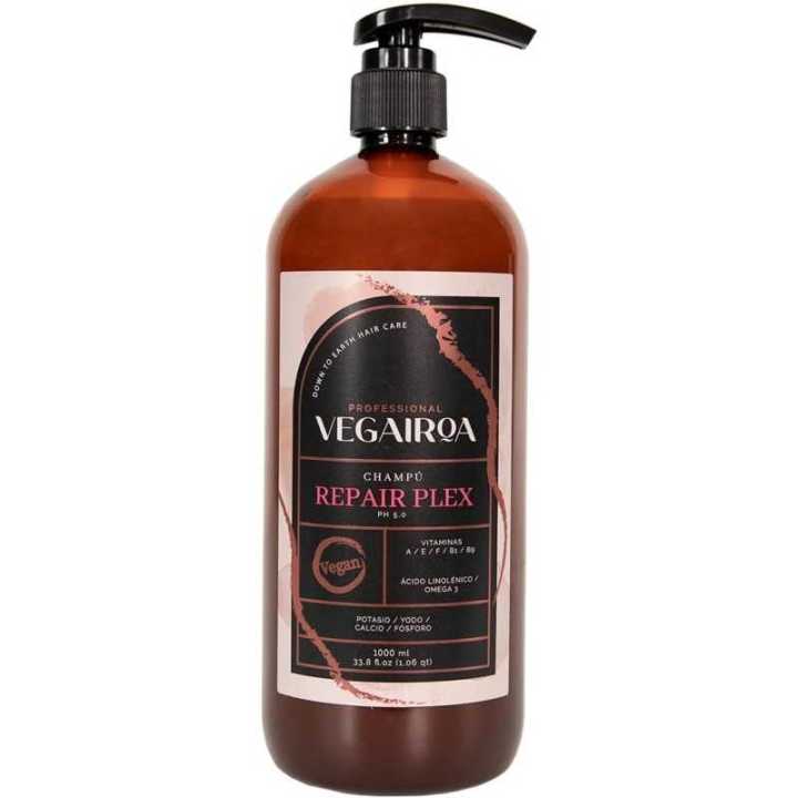 Vegairoa Repair Plex Champú 1000 ml es un champú profesional diseñado para reparar y fortalecer el cabello dañado, quebradizo o tratado químicamente. Su fórmula avanzada con tecnología Repair Plex reconstruye los enlaces internos de la fibra capilar, restaurando su fuerza, elasticidad y resistencia desde el primer lavado.