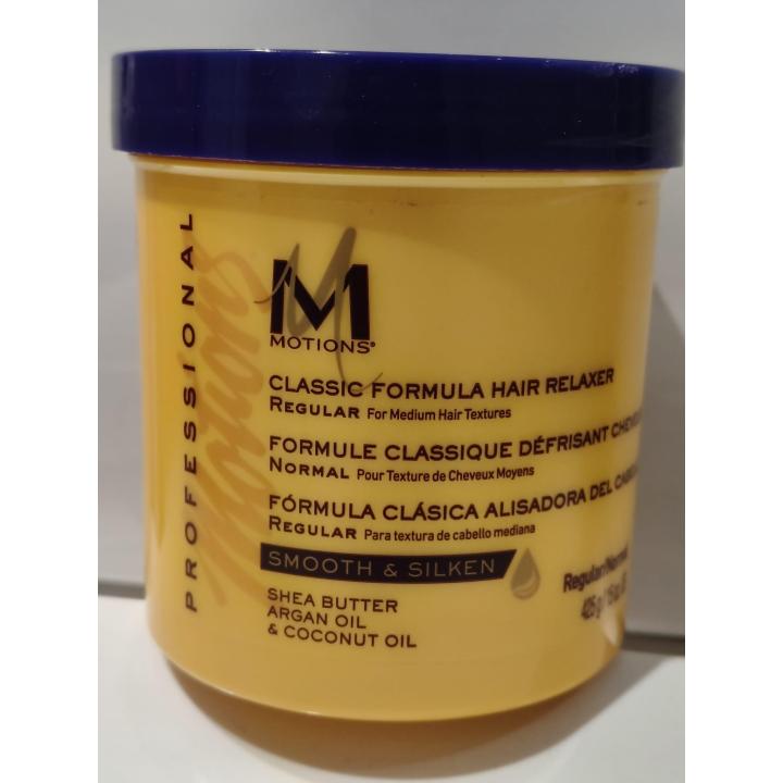 Motions Smooth & Straighten Classic Formula Hair Relaxer Regular es un tratamiento capilar diseñado para alisar y suavizar el cabello rizado o encrespado de forma duradera.Su fórmula profesional actúa directamente sobre la fibra capilar, reduciendo el volumen y facilitando un cabello más liso, manejable y fácil de peinar.