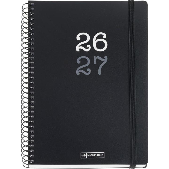 🖤 ESPIRAL METÁLICA Y GOMA EN COLOR NEGRO con papel de 80 g/m² con certificación FSC Mix Credit, cubiertas de polipropileno opaco y un acabado resistente y funcional para el uso diario.