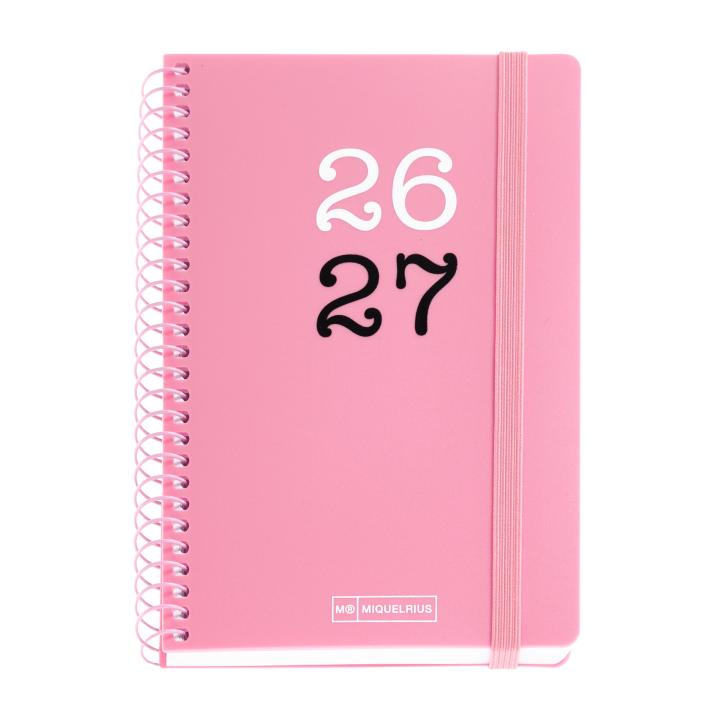 💗 ESPIRAL METÁLICA Y GOMA EN COLOR ROSA con papel de 80 g/m² con certificación FSC Mix Credit, cubiertas de polipropileno opaco y un acabado resistente y funcional para el uso diario.