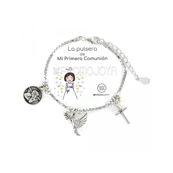 Pulsera para niña fabricada en plata de 1ª ley con abalorios dedicados a la Primera Comunión. Esta pulsera lleva cierre de mosquetón. Se envía con estuche oficial de la marca.