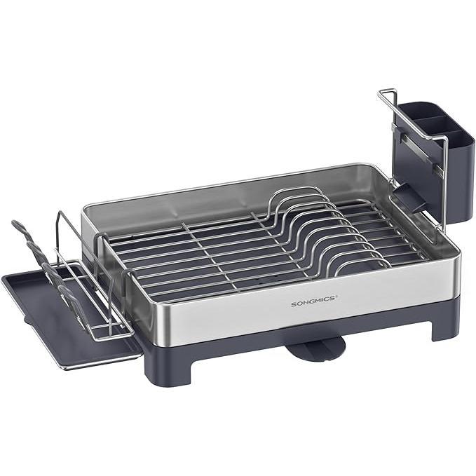 - Extraíble y personalizable: El portavasos viene con una bandeja de goteo extraíble que recoge el agua para facilitar tu limpieza; junto con el portautensilios, ambos pueden reposicionarse a cualquier lado del escurreplatos