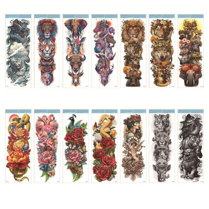 ![Tatuaje de brazo completo de mariposa serpiente, pegatinas de transferencia de agua de León y Lobo, tatuaje temporal de gran tamaño, tatuaje falso - details 0]()
