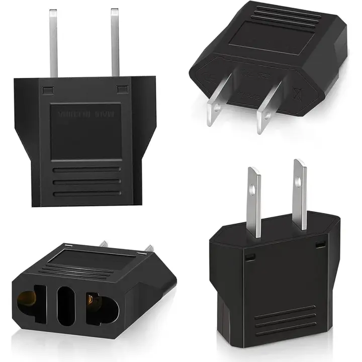 4 Piezas Adaptador Enchufe Europeo a Americano, Adaptador Enchufe Americano a Español, Tipo C/E/F/L/N a Tipo A para Viajeros Que Visitan USA/Japón/México/Canadá-Negro