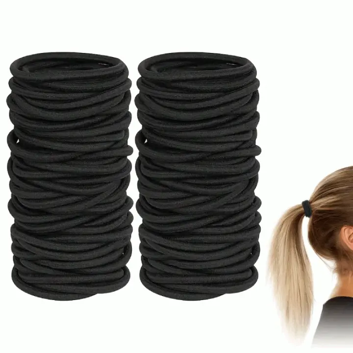 50pcs Cinturones Para El Cabello Elásticos 4mm Para Mujeres Y Niñas Color Negro Sin Metal Para Cabello Grueso Bobbles Para Coletas