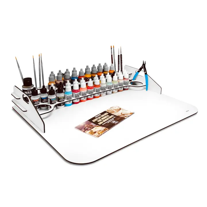 Paint Station Silu, Mesa de Trabajo para Pinturas Vallejo, Pinceles Miniatura, Herramientas Modelismo, Acrilicos para pintar Warhammer, Warhammer 40K, Maquetas. Pinturas NO incluidas