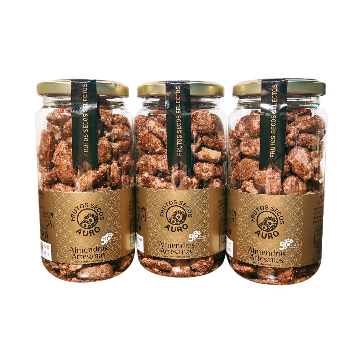 Las almendras garrapiñadas de Frutos Secos Auro representan la tradición y el buen hacer en la elaboración de dulces de frutos secos, apreciado por su combinación de textura crujiente y sabor dulce e intenso.
