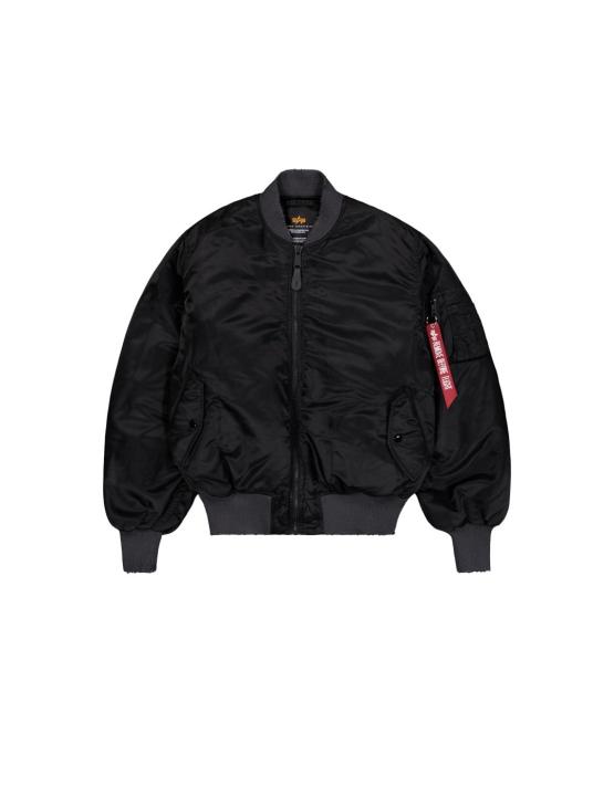 Cazadora de la marca Alpha Industrires modelo Distressed, diseñada en color negro. Cuenta con forro interior de poliéster y tejido exterior de nylon. Cierre de cremallera, bolsillos laterales y tejido elástico en puños y cintura para un mejor ajuste.