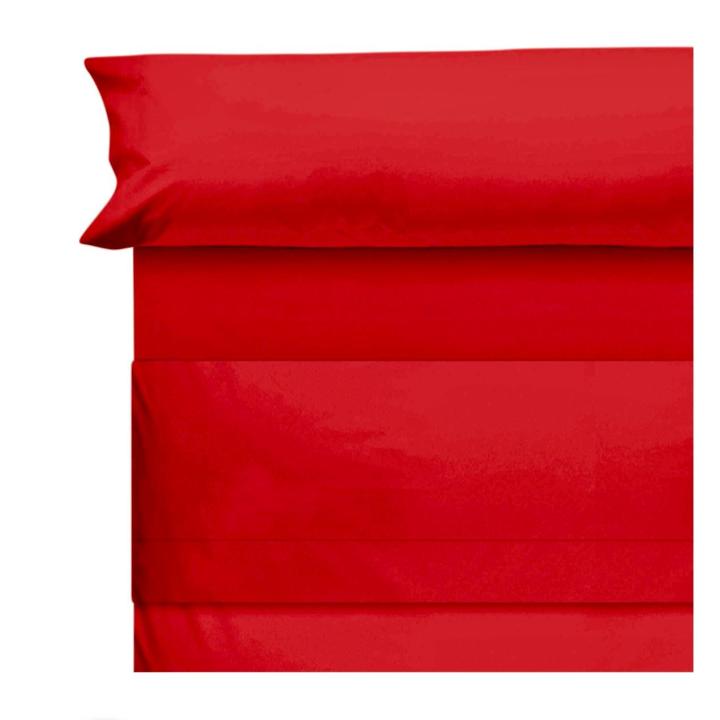 ❤️ Sábanas de Verano 100% Poliéster tacto Suave, Rojo, - Juego de 3 Piezas - Extra Suaves Lisas - Modelo Sprin Collections. Compuesto por sábana bajera ajustable, sábana encimera + una funda de almohada.