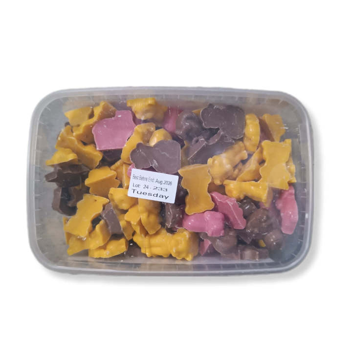 Disfruta de una selección única de deliciosos Animales de Chocolate Variado. Estas irresistibles figuras de chocolate, con diferentes formas de animales, combinan sabor y diversión en cada bocado.