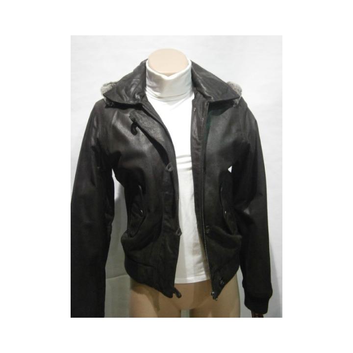 Cazadora de piel de señora con cremallera y capucha desmontable. Piel de pekari, puño y cintura con liguilla.