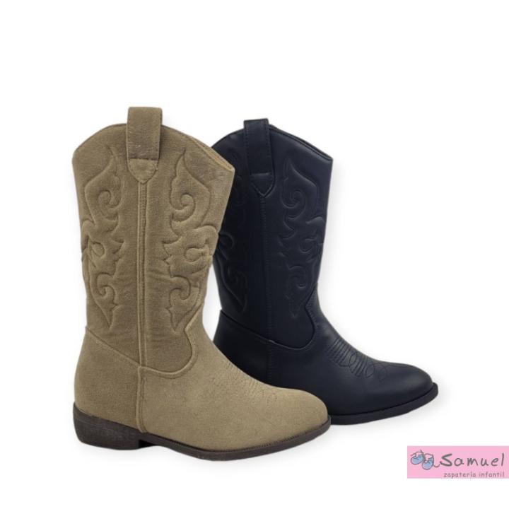 Bota estilo campera caña alta para niña. Acabado exterior en sintético con bordados al tono de la bota. Cremallera lateral para más comodidad a la hora de calzarse.