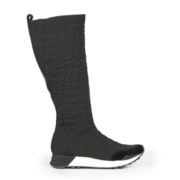 La tendencia que perdura por su comodidad, ahora en una versión XXL. Botas altas tipo calcetín negras con textura. Incorporan plantilla anatómica extraíble y entresuela de EVA. El sistema Gio Memory Effect se adapta a la forma del pie y aporta suavidad en cada pisada. La hilatura de los tejidos utilizados en la fabricación del forro de este modelo tiene el sello de garantía certificada Global Recycle Standard (GRS). ¡No te las querrás quitar!