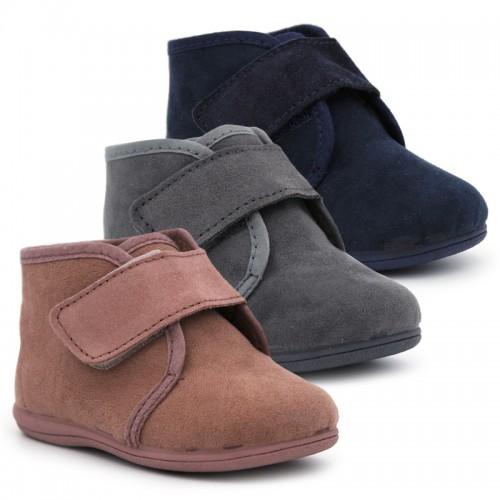 Estas botitas van a quedar muy bien con toda su ropita. Es un diseño liso hecho en textil, con forro cálido que van a mantener los pies a una buena temperatura. Cuenta con un cierre adherente para que los peques puedan abrir y cerrar de forma fácil y sin presiones. Además, se trata de un modelo con suela vulcanizada, de goma que es muy flexible y adherente a las superficies. No tienen contrafuerte en el talón, ni en la puntera. Tienen un ribete de textil en el mismo tono. Es un modelo fabricado en España, elaborado con buenos materiales y de la mejor calidad.