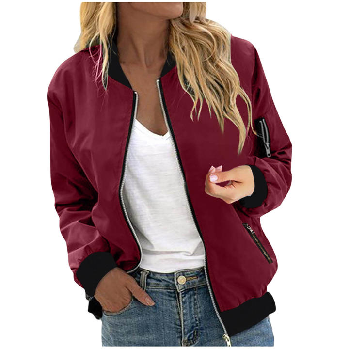 Con un patrón sólido clásico y una moderna silueta de chaqueta bomber, perfecta para un look casual pero elegante.
