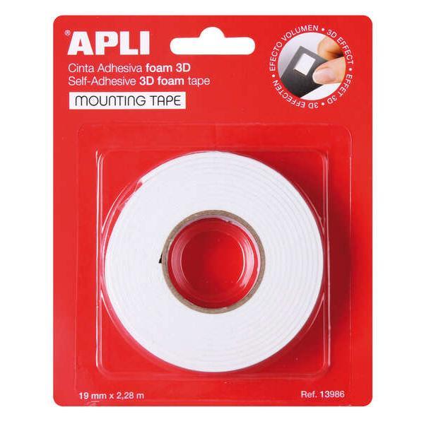 Apli cinta adhesiva doble cara foam 3d - 19mm x 228m - adhesion fuerte y duradera - ideal para manualidades y decoracion - blanco