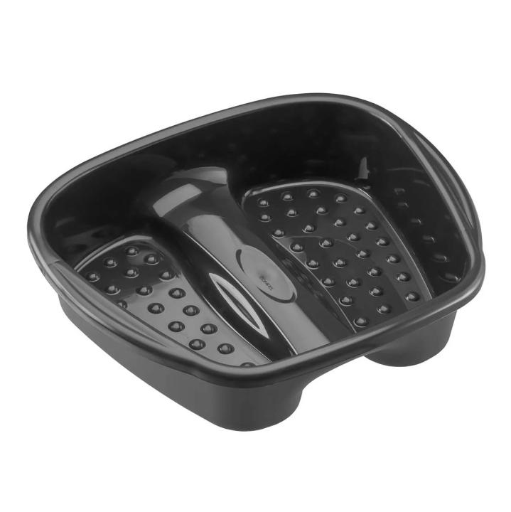 Con un diseño moderno y una forma anatómica, tiene un amplio espacio para acomodar los pies. La textura en contacto con la planta de los pies tiene forma de microesferas, lo que favorece el confort y la relajación. Fabricado con material altamente resistente a los productos químicos, es fácil de limpiar y duradero.
