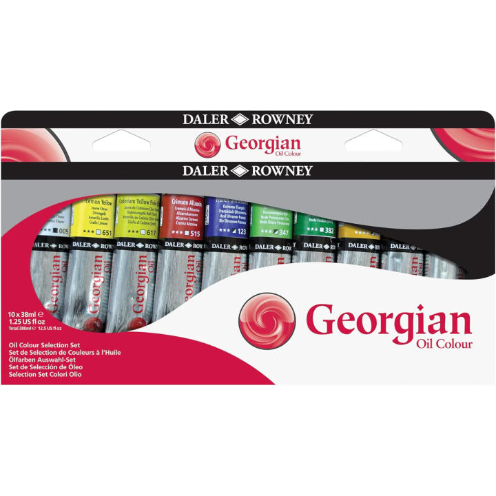 Explora tu creatividad con el Daler Rowney Georgian Pintura al Óleo Selection Set 10x38ml, un set que combina calidad, versatilidad y una rica gama de colores para llevar tus obras al siguiente nivel.