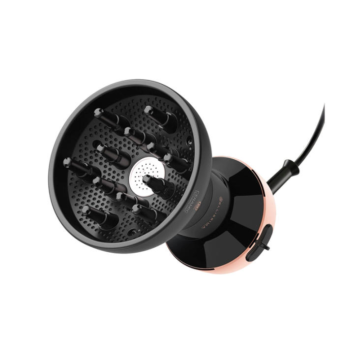 Secador Bellissima Mypro Diffon DF1 3000 con tecnología integrada y difusor integrado El calor bueno de la cerámica para tener unos rizos hidratados y elásticos. Un difusor integrado en un secador con tecnología cerámica para respetar y realzar la belleza del rizo natural dejándolos más hidratados, definidos y sin encrespamiento (frizz).