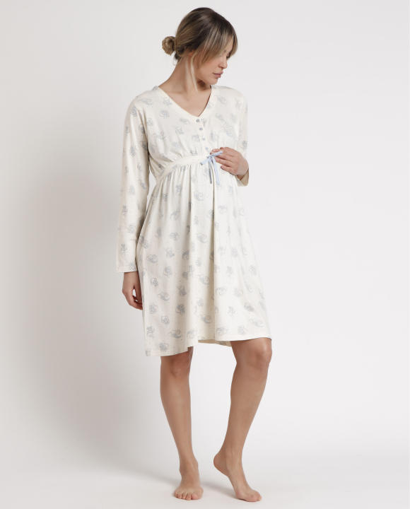 * Camisola premamá y lactancia, de punto de algodón, de manga larga, cuello pico con tapeta con botones.