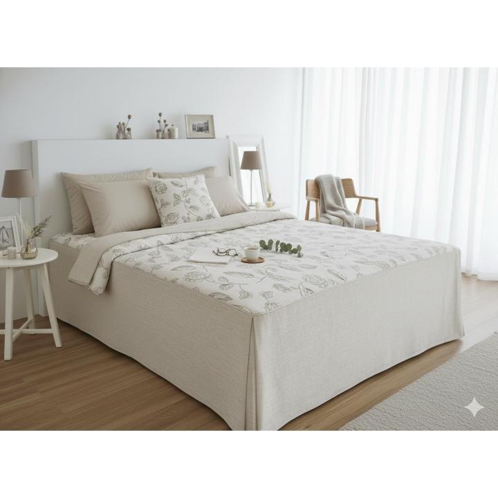 Su diseño floral en tonos neutros y su textura suave crean un ambiente cálido, natural y atemporal, ideal para disfrutar de un descanso pleno y con estilo.