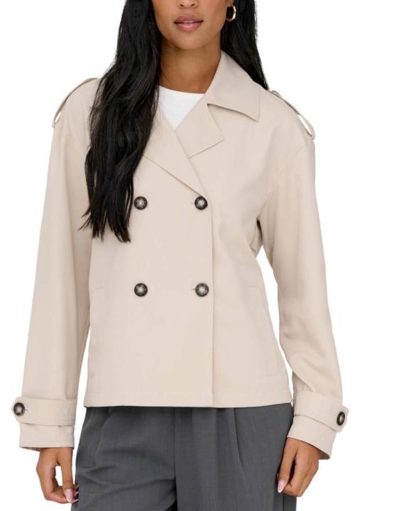 Gabardina Only beige. Cuello con grandes solapas, cierre cruzado con botones y puños ajustables. Trabillas decorativas en los hombros, dos bolsillos de mano y solapa antitormenta. Corte regular.