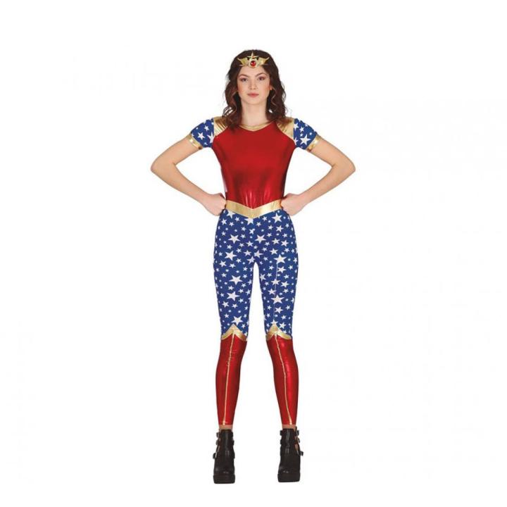 Disfraz de Heroína Estrella rojo y azul para adolescente. Incluye Mono. No incluye Corona ni calzado