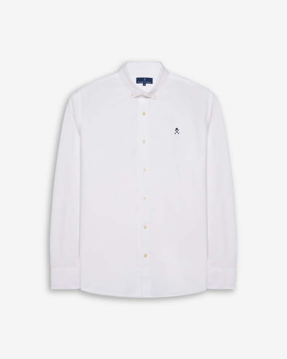 Camisa de algodón 100% de corte clásico. Diseño de manga larga con cuello abotonado y cierre frontal de botones. Bordado en el pecho en contraste. Un básico imprescindible para un look elegante y atemporal.