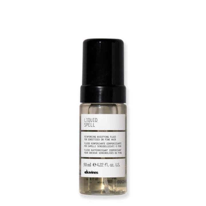 El dispensador sin gas, permite transformar la formulación líquida en un suave mousse de fácil distribución, para una aplicación rápida y agradable. Sobre cabello empapado con una toalla, distribuir de modo uniforme, 3-4 dosis de producto desde las raíces hasta las puntas. Secar el cabello y proceder con el peinado. ‘Liquid Spell Reinforcing Bodifying Fluid’ puede utilizarse en combinación con otros productos Davines de cuidado para el cabello, aplicándolo después de los ‘serum’ (para cuero cabelludo) y antes de los tratamientos para el cabello o de los productos de moldeado. Las moléculas ‘termoactivas’ de ‘Liquid Spell Reinforcing Bodifying Fluid’ se activan con el calor de herramientas térmicas.