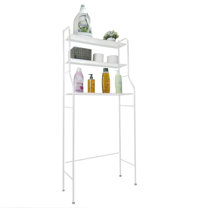 3 alturas con baldas metálicas ideal para almacenar todos los objetos cotidianos de la colada, sin anclaje a pared, gracias a sus 4 patas ajustables en altura conseguiremos regular la inclinación