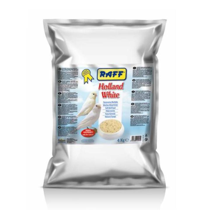 Pasta para canarios y otro tipo de aves granívoras blanca humeda sin colorantes Composición: productos de pastelería, cereales, aceites y grasas, azúcares, extractos de proteínas vegetales, sustancias minerales, semillas, huevos y productos a base de huevos, levaduras. Aditivos por kg: Vitamina A 8.500 IU, Vitamina D3 500 IU, Vitamina E 5,5 mg, Vitamina B1 2,8 mg, Vitamina B2 2,8 mg, Vitamina B6 1,4 mg, Vitamina B12 0,0075 mg,Vitamina PP 5,6 mg, Ácido D Pantoténico 2,8 mg, Vitamina H 0,028 mg, Zinc 8 mg, Cobre 7 mg, Hierro 15 mg, Manganeso 16 mg, Yodo 20,8 mcg. Proteína: 10 % Grasa 15 %