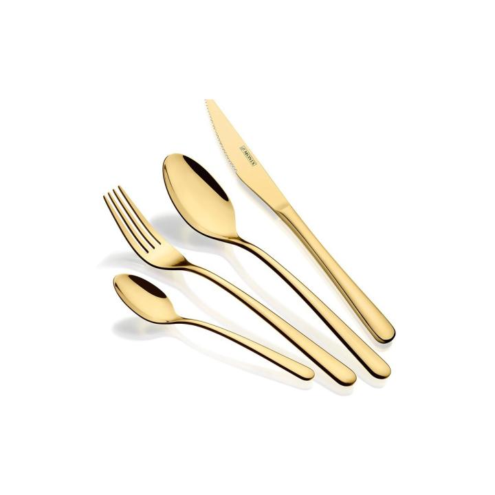 Monix Pisa - Juego 24 piezas Gold con chuletero acero inoxidable 18/10 diseño contemporáneo acabado pulido brillante espesor 3