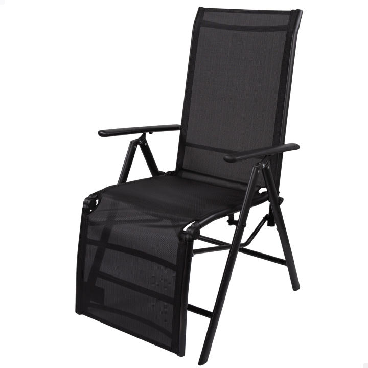 Tumbona plegable para jardín Aktive Garden con medidas 145x47x80/107 cm. Tumbona fabricada con aluminio recubierto en polvo con tejido de textileno en color negro, con protección solar y repelente al agua. El respaldo y el reposapiés son reclinables con reposabrazos ergonómicos regulables en función de la inclinación del respaldo. Soporta un peso máximo de 100 kg. ¡Disfruta de un asiento cómodo con Aktive Garden!