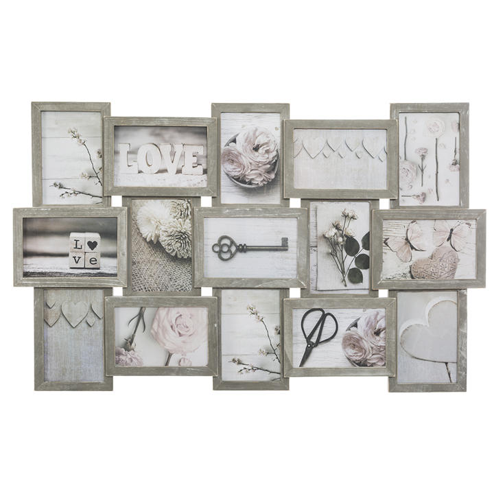 Bonito marco para 15 imágenes Decora cualquier parte de tu hogar con este fantastico marco. Gracias a su fabuloso diseño, combina facilmente con cualquier tipo de decoración. Composición: Resina Color: Beige Dimensiones: 72,4x2,7x44,8cm
