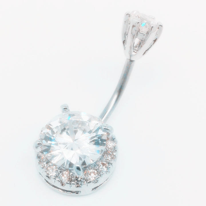 Anillo de circonia cúbica para ombligo, joyería para el cuerpo, 14g, color plateado, flor, piercing para el ombligo, 1 unidad