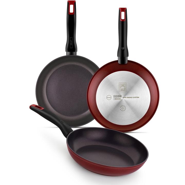 Las nuevas sartenes de la colección Red Diamond ya están disponibles en estos dos lotes de tres sartenes. Gracias al aluminio forjado y su diseño, estas sartenes ofrecen una resistencia extra que te ofrecerá una máxima durabilidad para poder cocinar cada día de tu vida.