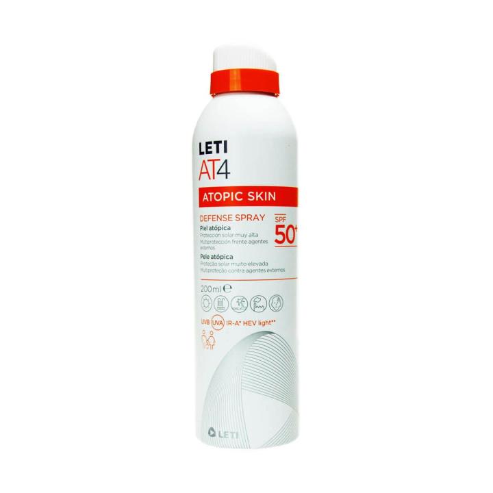 LETI AT 4 SEFENSE SPRAY contiene y factor de protección muy alto y es especifica para pieles atópicas creando una barrera multiprotectora frente a las agresiones externas.