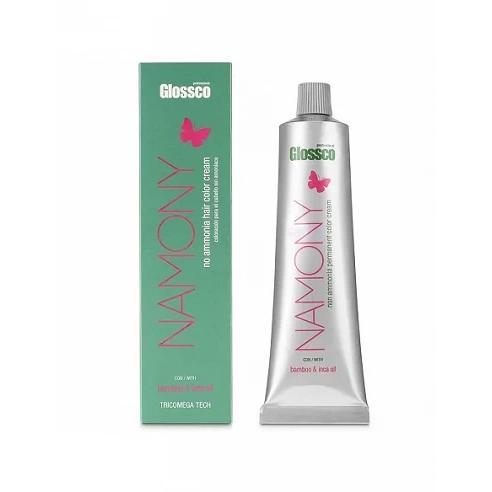 Tinte Namony 100 ml. es una coloración permanente de Glossco Profesional, sin amoniaco y libre de PPD, con una fórmula que contiene aceite de Bamboo, que hidrata, fortifica y aporta brillo al cabello y aceite de Inca que acondiciona, suaviza y aporta brillo.