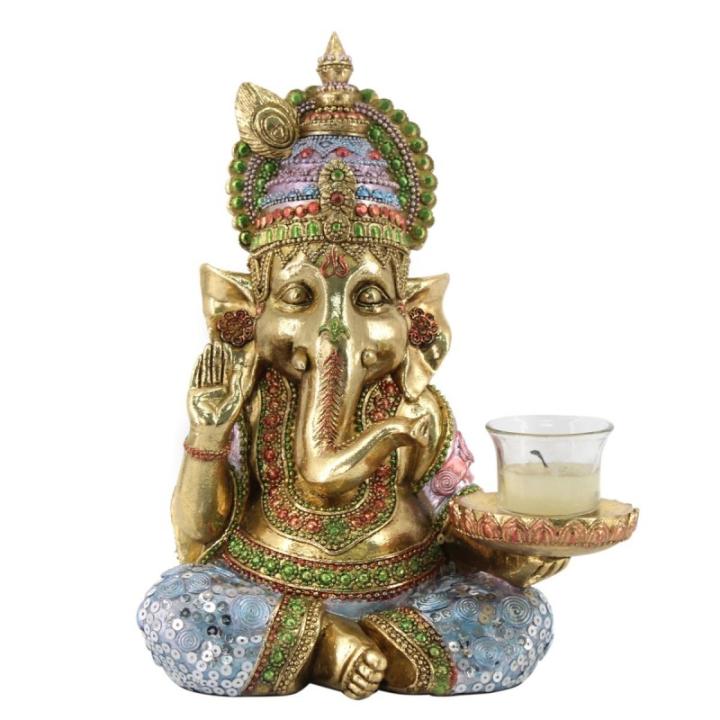 Signes Grimalt By SIGRIS - Portavelas ganesha Dorado de Resina | Portavelas Figuras Decorativas Decoracion Salon 23x12x18cm