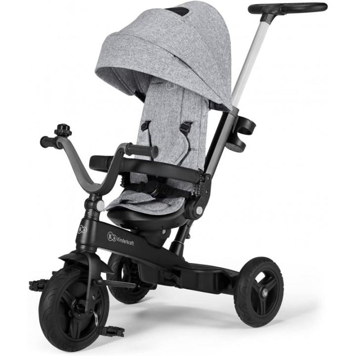 La estructura de modular permite modificarla y adaptarla a la edad, el tamaño y las capacidades cambiantes del niño en crecimiento. Ya es apto para niños a partir de los 9 meses (con el asiento en sentido contrario a la marcha). No necesita ninguna herramienta para ello. El triciclo cuenta con un automatismo de rueda libre, para que el niño pueda subirse a la Pedal e sin poner la rueda en movimiento. El arnés de seguridad de 5 puntos y la barra de seguridad de cierre central, recubierta de una agradable imitación de cuero fácil de limpiar, son los responsables de la seguridad del niño.Además, el triciclo TWIPPER ayuda al niño a desarrollar la coordinación de movimientos y le enseña a comportarse de forma segura y correcta al aire libre. También prepara al pequeño ciclista para la bicicleta clásica.Con el triciclo TWIPPER, cada paseo se convierte en una gran diversión aventurera.La seguridad:Arnés de 5 puntos: arnés de seguridad ajustable de 5 puntos con almohadillas blandas. tBarra de seguridad: barra de seguridad de cierre central y fácil de usar para los más pequeños durante el paseo. tNeumático delantero completo - sin radios, para que los pies del niño estén seguros durante el paseo tRueda libre automática: se bloquea en el neumático delantero tFreno - dos frenos para que el triciclo no ruede por sí mismo cuando se detengaAgarre antideslizante: agarres antideslizantes en el manillarConfort:CLICK & TWIST - el asiento giratorio de 360° CLICK & TWIST permite colocar el asiento en el sentido de la marcha o en contra de la mismaPosición semi recostada: asiento amplio y cómodo, el respaldo se puede ajustar a una posición semi recostadaNeumáticos de PU - duraderos, no se inflan, la adición de PU asegura la durabilidad y todavía permite un alto confort en diferentes superficiesGran toldo plegable: protege al niño del sol y del viento, ventana para el contacto con el niñoFunda: funda de asiento suave y extraíble, se puede lavar en la lavadoraFuncionalidad:Modular er estructura - se puede modificar para adaptarse a la edad del niñoAsa para los padres: regulable en altura (de 84 cm a 107 cm) y ajustable a 4 alturas. Facilita el empuje del triciclo incluso cuando los padres son altosAccesorios: accesorios adicionales incluidos: Una cesta para los pequeños objetos del niño, un timbre y un porta bebidas.Fácil de desmontar: sin herramientas, TWIPPER es muy fácil de usar y transportar