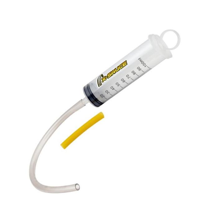 Inyector de 100 ml con manguito flexible compatible con válvula gruesa y fina. Para aplicar el sellante de forma cómoda a través de nuestras válvulas desmontables. Compatible para válvula gruesa y fina. La mejor opción para meter el sellante en cámaras de válvula fina que no sean desmontables.