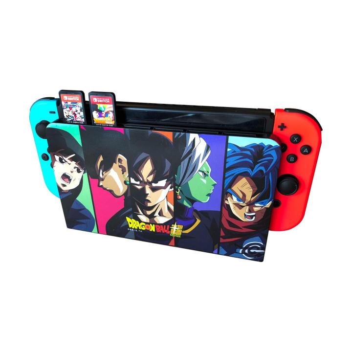 Dock Cover para Nintendo Switch con diseño Licenciado de Dragon Ball Super. Esta funda protege el dock de la consola y evita rayadas en la pantalla, además tiene una ranuras en la parte superior que permiten la colocación de hasta seis juegos.