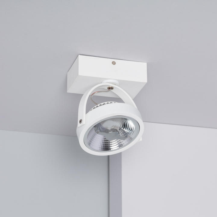 Este Foco LED 15W CREE de Superficie Direccionable AR111 Regulable integra una fuente lumínica con tecnología COB que tiene una luminosidad de 800 lm. Proporciona, en un ángulo de 24º, una luz de gran calidad que asegura una reproducción de los colores de forma muy natural. Este tipo de luz complementa perfectamente la iluminación general de cualquier espacio. Se montan en superfície fijando 4 tornillos al soporte metálico. El driver viene precableado haciendo la instalación de este foco una tarea sencilla. El foco puede rotar hasta 350º sobre su eje.