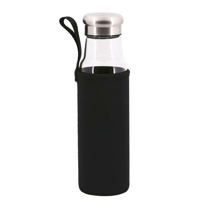 IRIS - Botella de Agua 0.55L en Vidrio con Funda Neopreno, Negro
